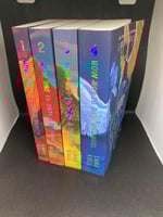 Mass market paperback (4.5x7in) printed with a holographic cover, spine, and back, with a colored title page, and bonus content included.